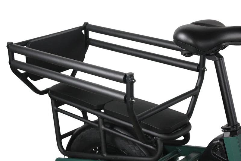 Built to handle it all. It’s perfect for families or anyone needing extra cargo space, offering room for two passengers on the rear seat, the option for a child rack, and a spacious front cargo tray. Whether you’re running errands, taking the kids to school, or heading out on an adventure, Amigo Plus has you covered. With fat tyres, front suspension, and an ergonomic seat post. Powered by a high-torque rear hub motor and torque sensor, Amigo Plus provides effortless performance.